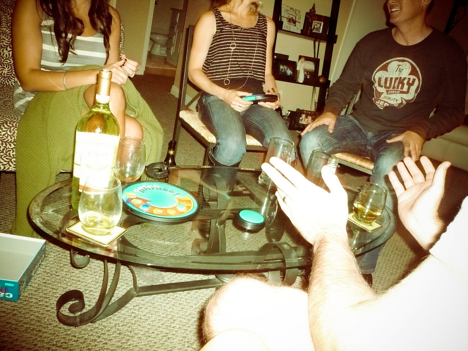 By Saturday night, we were all worn out from the big wedding the night before plus a full day in the sun. So Tone and Brian came over for pizza, wine, Jeopardy and a few rounds of Catch Phrase… the Two Tings + Jake won (just saying).