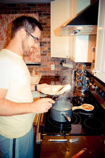 After tonight’s workout Danny made homemade green chili chicken enchiladas for us. I love when he cooks. And of course, Hunter’s always a huge help aka standing right under our feet waiting for falling scraps. I’ll admit I was nervous about the “soysations” soy cheese but it wasn’t bad and definitely made dinner less sinful. Yum.