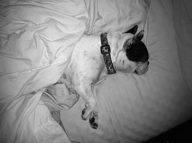 Each morning I wake up to two cuddly, snoring men and I couldn’t love it more. Yes, our dogs sleep with us. Before we got Hunter Danny proclaimed, “dogs will not sleep in the bed or be allowed on the couch” – oh how quickly that changed… now Hunter’s usually the first in bed to claim a good spot. We love a good Frenchie cuddle.