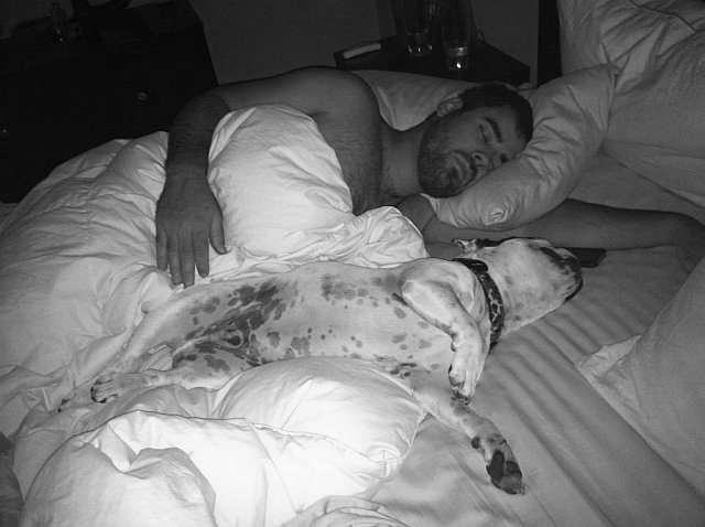 I never know what morning position I’ll find Hunter in but it’s always guaranteed to be comical since he thinks he’s a human and prefers to use a pillow and covers. I love it. It never gets old and I always sneak a camera phone photo.