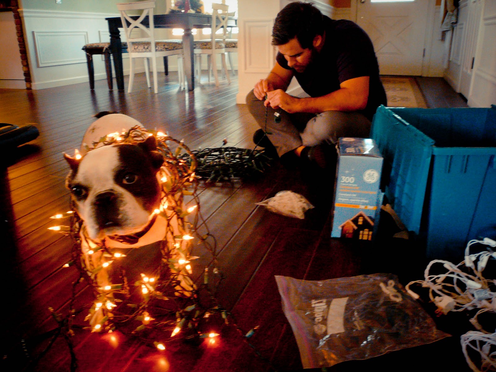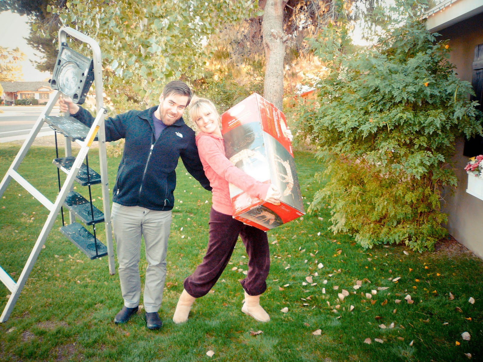 AHHHH HAHAHAH!! Love this post. I CANT believe you are one of those houses… with the reindeer “eating grass”. Do you have a jumbo blowup snowman for the front yard too? (for the record, I am secretly jealous)I love the holiday spirit. Lucky you have 2 handymen around the house to do the hanging (again, jealous!)