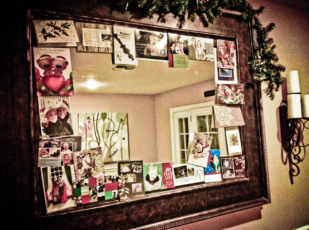This year I put mine on our piano in the entry way. I looooove getting holiday cards. Reminds me that e-cards aren’t taking over the world … just yet.