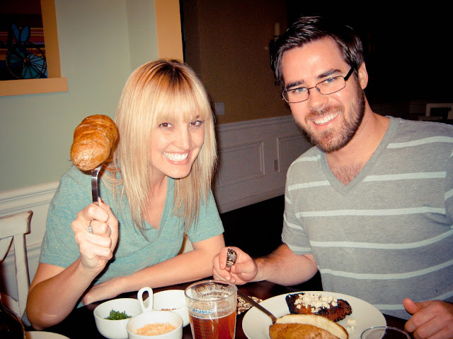 Well, I guess practice makes perfect because he seriously cooked last week’s meal to perfection. He invited Angela to join us for dinner so the pressure was really on. He made a homemade rub for the steak which added a smokey, crunchy crust to the medium rare meat that was sprinkled with blue cheese crumbles – yum. Plus he had all fresh fixings for baked potatoes. Delish.
