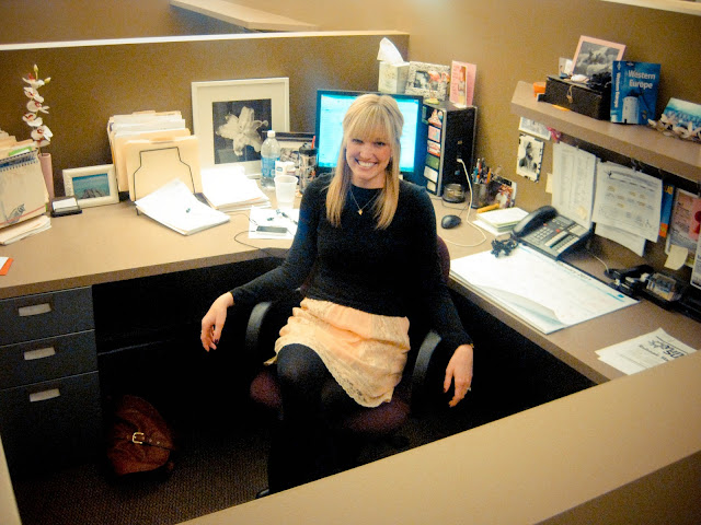 It is so fun to see peoples office space- its funny how a cube can look so different, depending on who you are and how you decorate (if you can even call decorating a cute decorating)