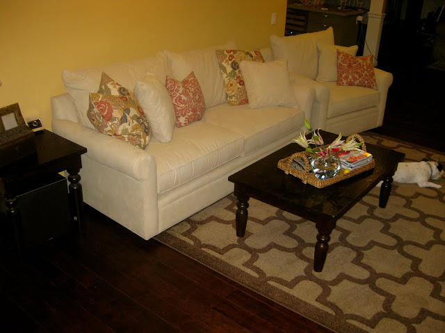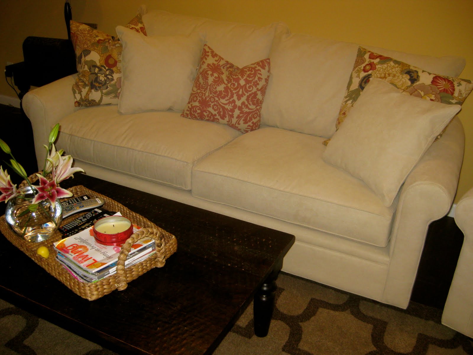 Remember our Valentine’s Day gift to each other? The new couch and chair (here)? It arrived yesterday!