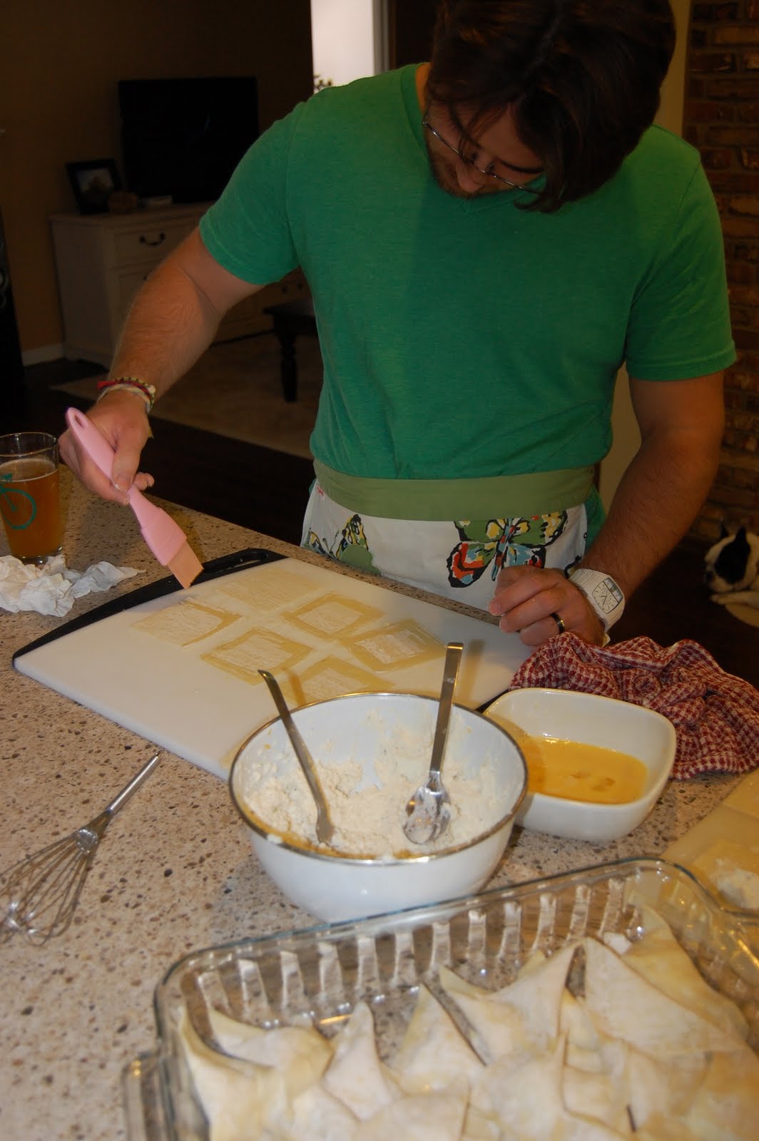 {professional ravioli maker. i really should get him a more manly apron to use.}