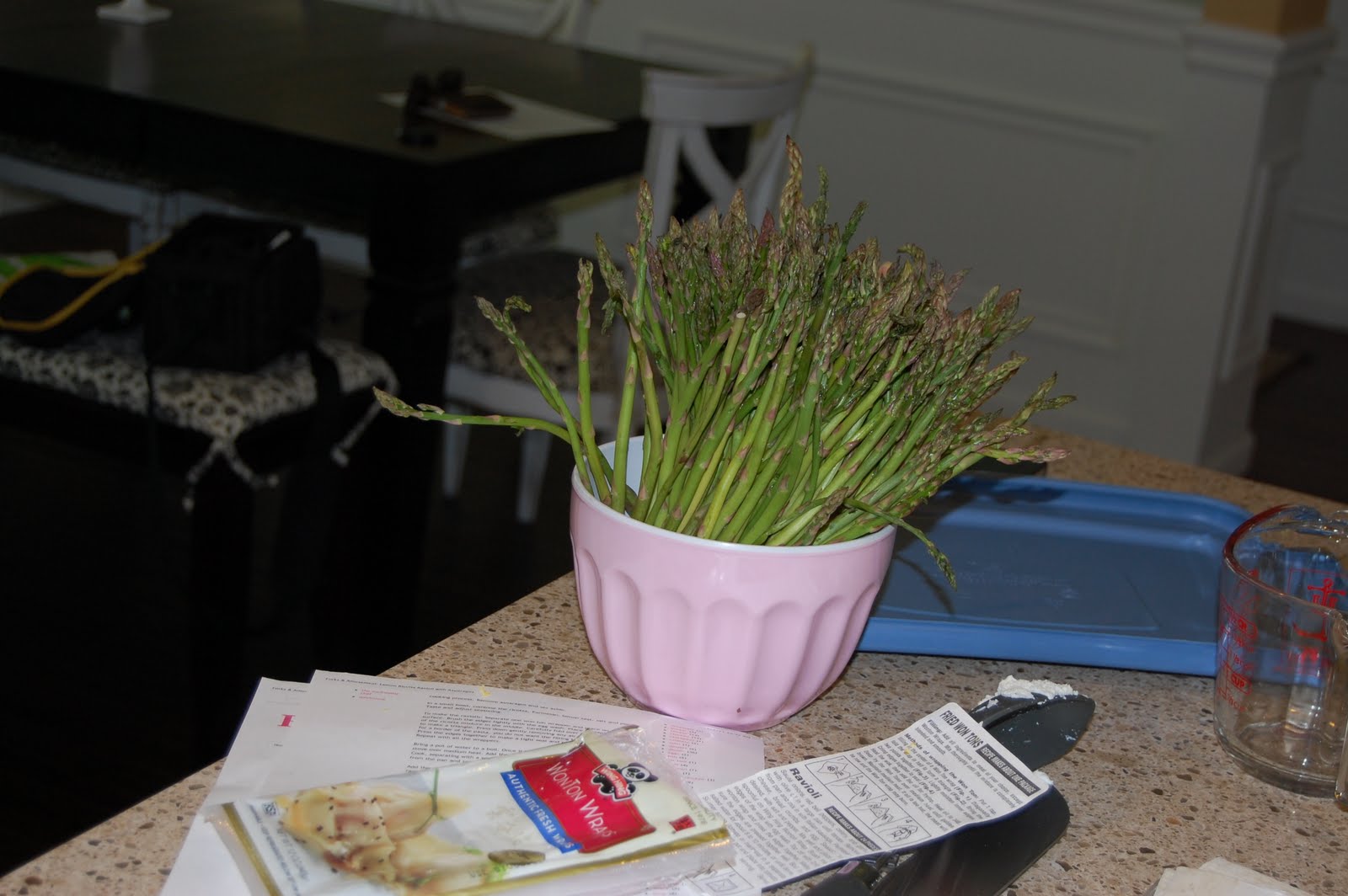 {trimming asparagus, so easy a six-year-old can do it. right, dan?}
