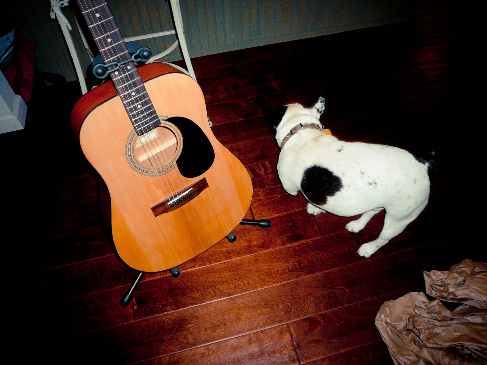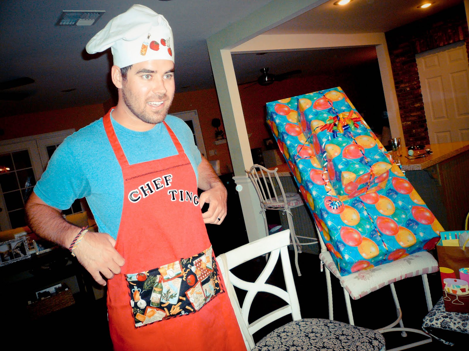 on monday vicky came over for dinner and ting got to open birthday gifts from his parents and meme. cooking tools, a handmade apron for chef ting and an acoustic guitar plus all the gear – now he just needs the lessons!