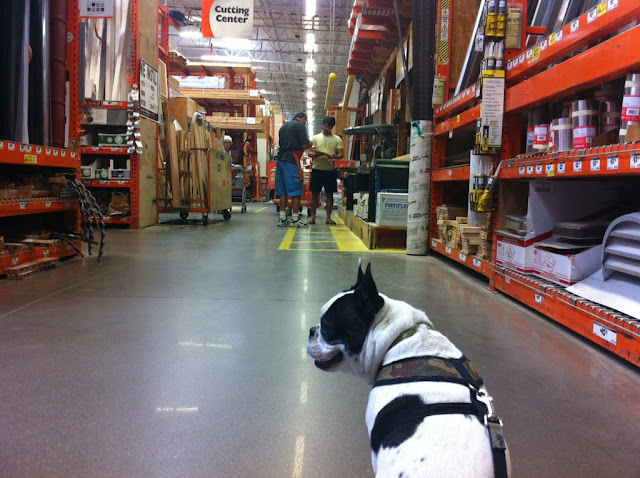 we were out and about this weekend with huntie when danny remembered he needed to have a piece of wood cut at Home Depot. waaayyy to hot to sit in the car, it became a family outing. as you can imagine, hunter loved all the new smells and felt very cool cruising through Home Depot with dad.