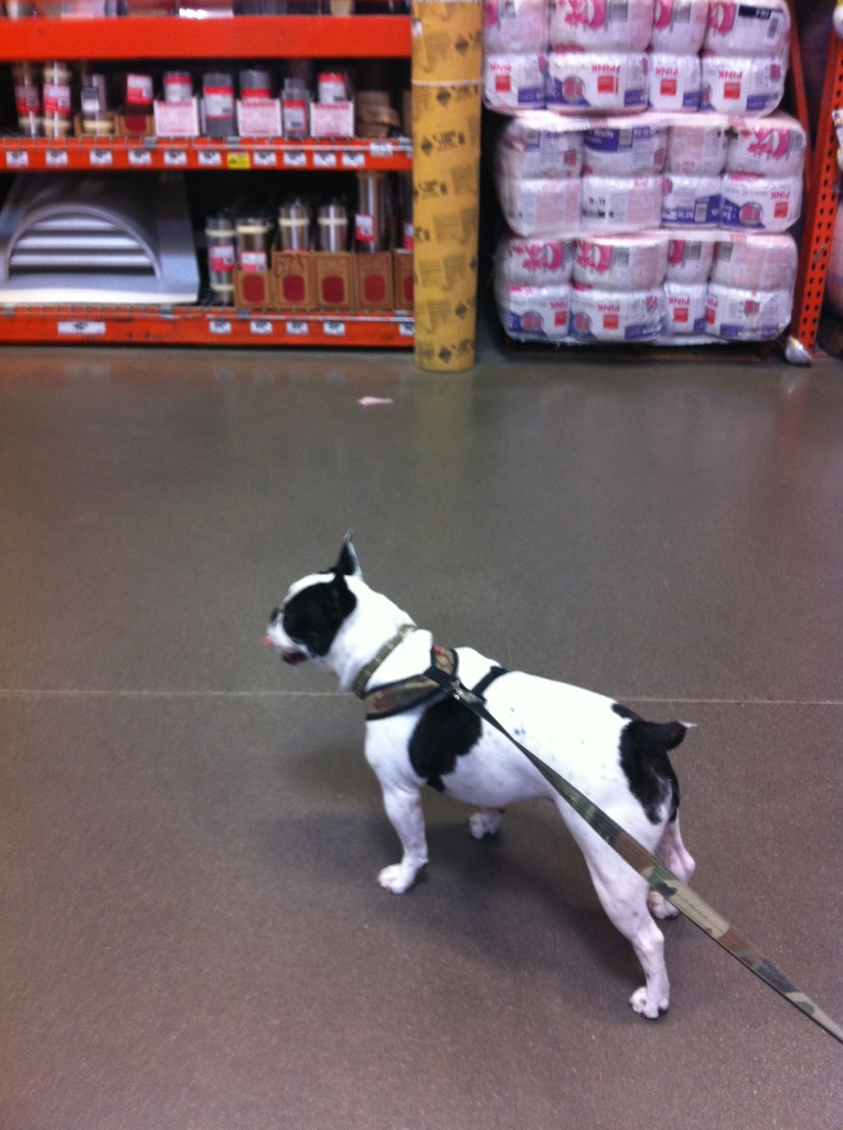 we were out and about this weekend with huntie when danny remembered he needed to have a piece of wood cut at Home Depot. waaayyy to hot to sit in the car, it became a family outing. as you can imagine, hunter loved all the new smells and felt very cool cruising through Home Depot with dad.