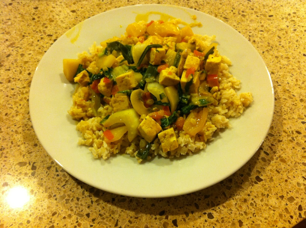 So, I kept my mouth shut and let him cook away. We had tofu curry with vegetables and brown rice that first night and I have to admit it was really good and right up my alley.