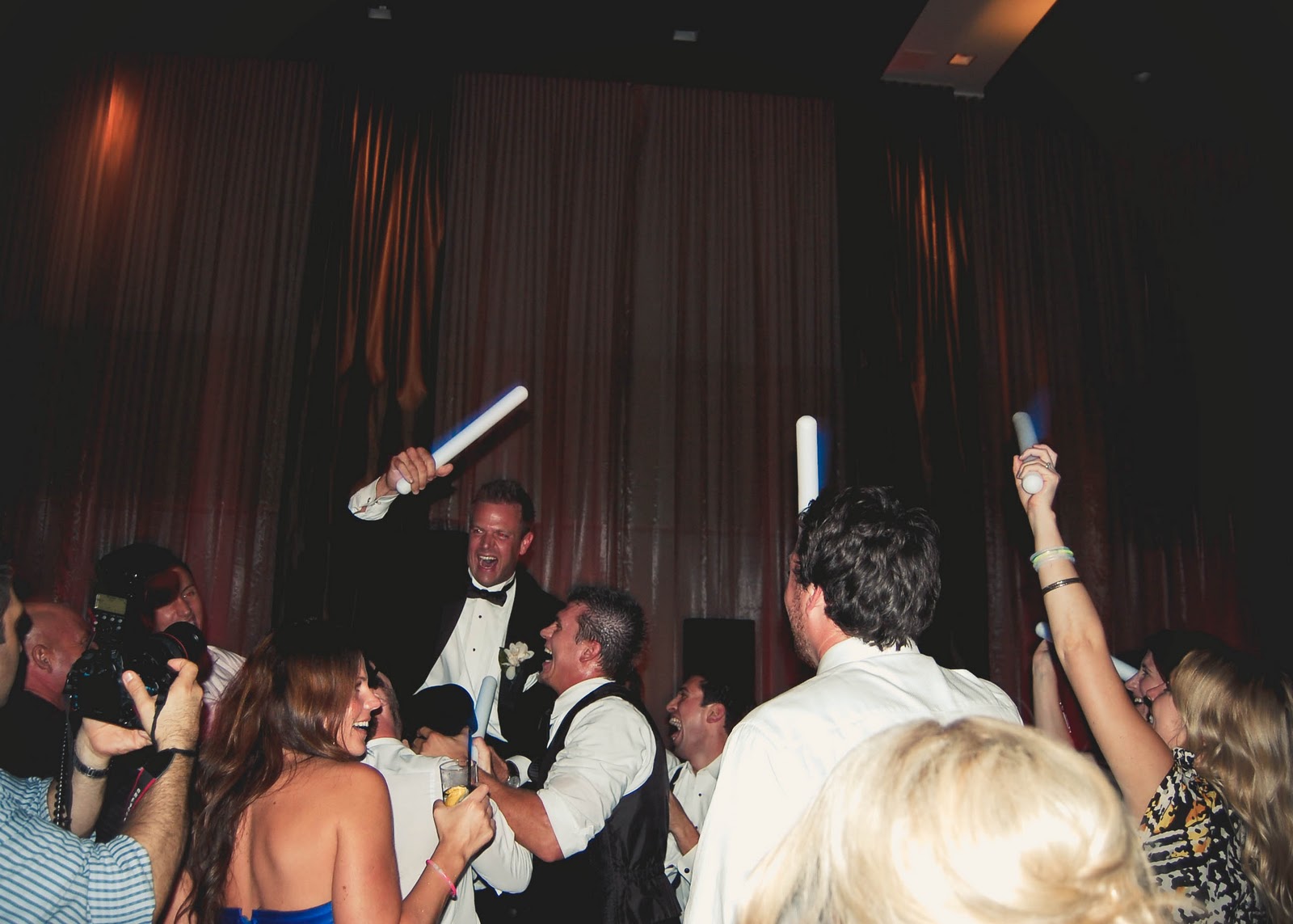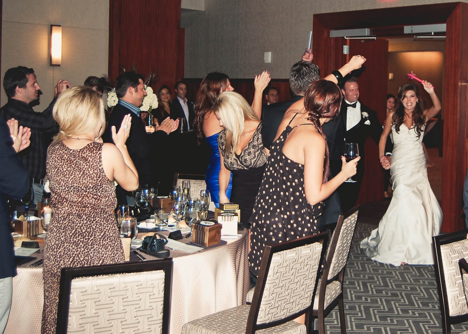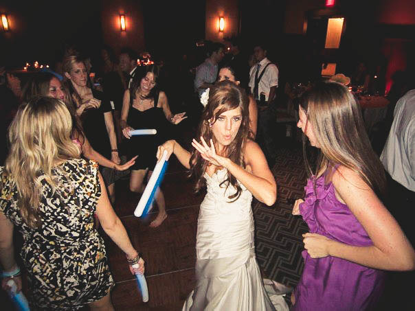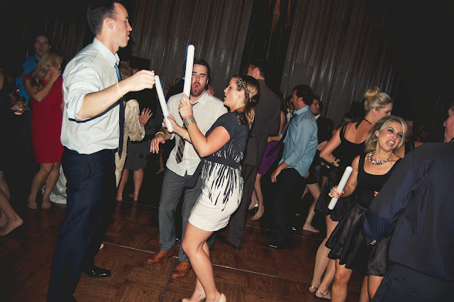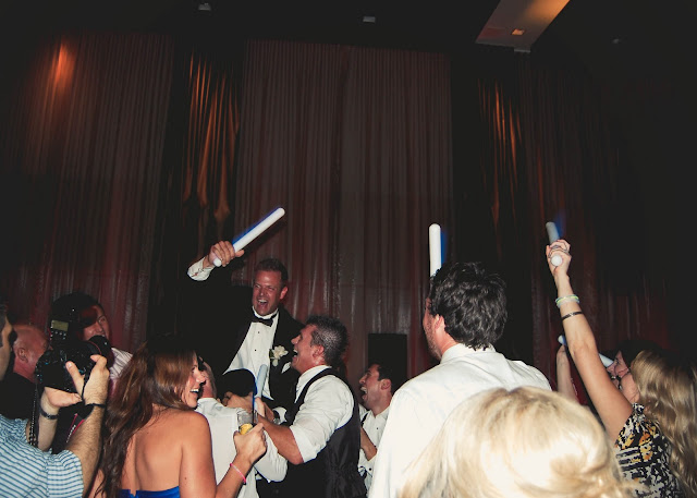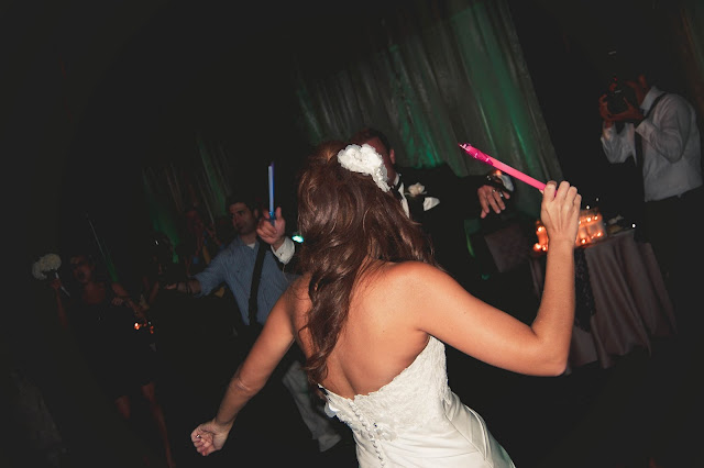 {bride and grooms grand entrance with glowstick wands}
