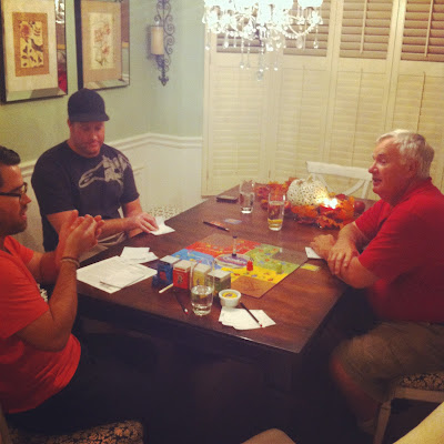 on friday afternoon my dad, little brother and odie (steven’s pup) pulled into phoenix for a weekend visit. we kicked things off with pizza, wings & salad at LGO followed by a good old fashioned family game night. steven and danny vs. teri and bill for a couple fun rounds of cranium. the game provided some really good laughs as we debated sUshimi vs. sAshimi, the famous first words of moby dick, whales, laundrOmats, julia child & celine dion charades and us vs. china execution rates but in the end dad and i won. duh. nice try, boys.