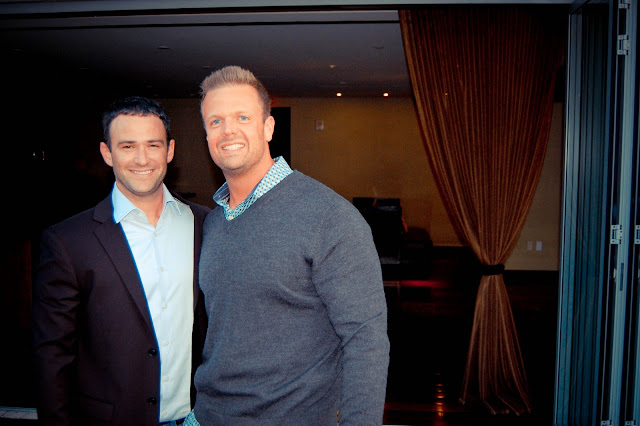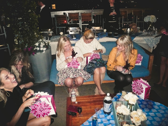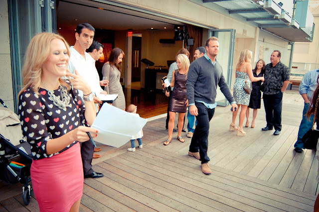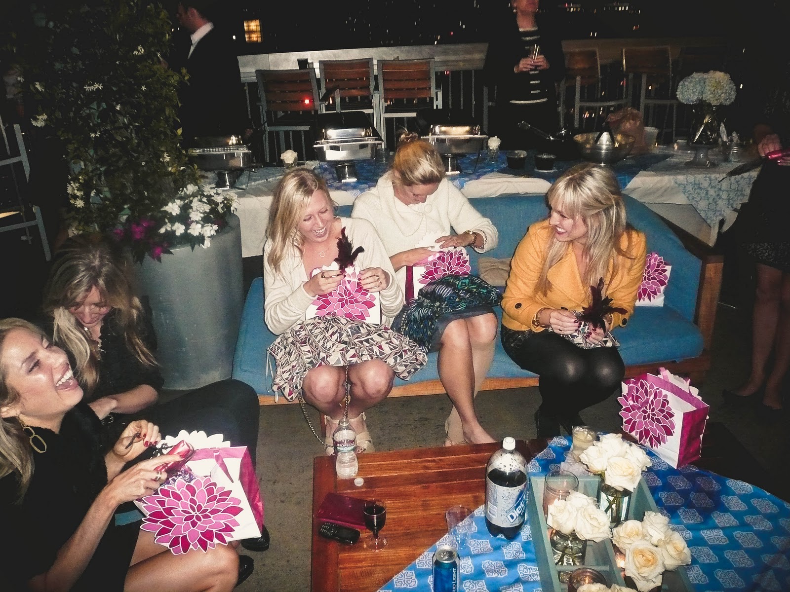 after the ceremony rehearsal, we headed over to the Icon Building’s rooftop for the rehearsal dinner hosted by tiffany & troy (donna, too)! the rooftop overlooked downtown san diego, directly into petco park and over the water – an absolutely gorgeous setting. on top of the view, tiffany outdid herself with a blue & white “vintage forks & knives” theme. she had rustic frames hanging from the roof with forks, knives & spoons chiming in the breeze, utensils in the vases, adorable napkins and more. the italian theme was complete with an amazing dinner, blue and white gingham tablecloths and hydrangea. i was personally a huge fan of the mini glazed donuts for dessert. a perfect bite-sized, no-fuss dessert for a cocktail party. wonderful evening with a toast from the groom and mother of the bride and passing out of wedding party gifts (all amazing!). oh, and there was a private toast from jenny (thankfully caught on film) after all the adults left and just the close friends were left to wrap-up the fun.