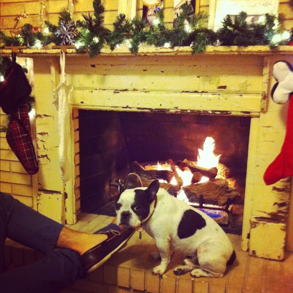 December 12, 2011 a frenchie roasting by an open fire. …and rotating when his fur gets a little too warm on one side. {resting his head on dad’s legs} p.s. i think it may be time for hunter to get a new stocking. that bone stocking is way obnoxious. eegads! Previous articleall wrapped up. Next articleliving life. You May Also Dig These Posts... August 17, 2014 the sunday times. July 29, 2014 danny vs. insect >> the saga continues. May 15, 2013 danny’s front porch cactus garden is growing. January 28, 2013 rainy weekend morning pancakes. Join The Conversation. Leave a Comment. Click here to cancel reply. Cancel replyCommentAlphaOmega Captcha Classica – Enter Security Code ⟲ ➴ Name * Email * Website Save my name, email, and website in this browser for the next time I comment. Δ