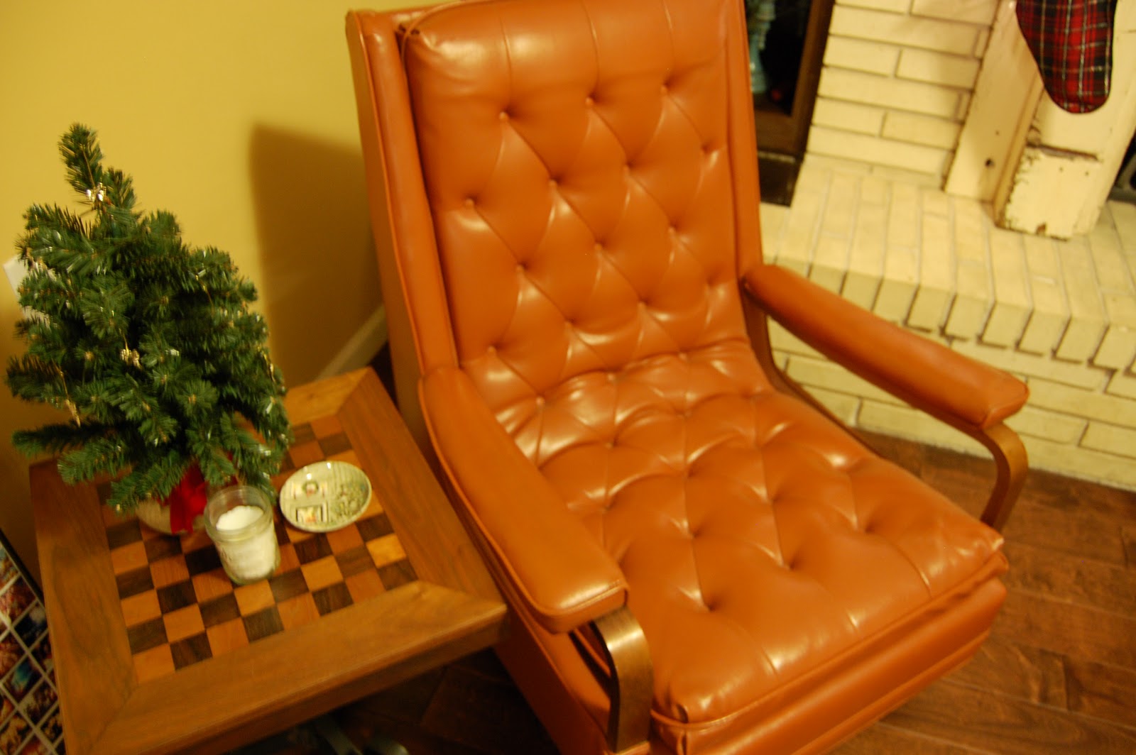 {ting’s a happy camper now that his chair is by the fireplace (to make room for the tree)}