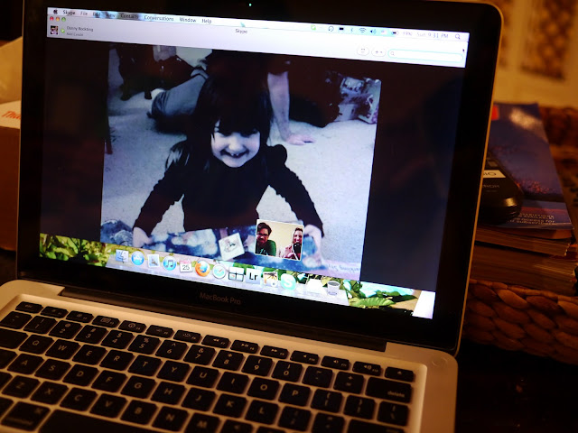 {skyping with the schramm family in san diego. miss jayden opening her guitar from us}