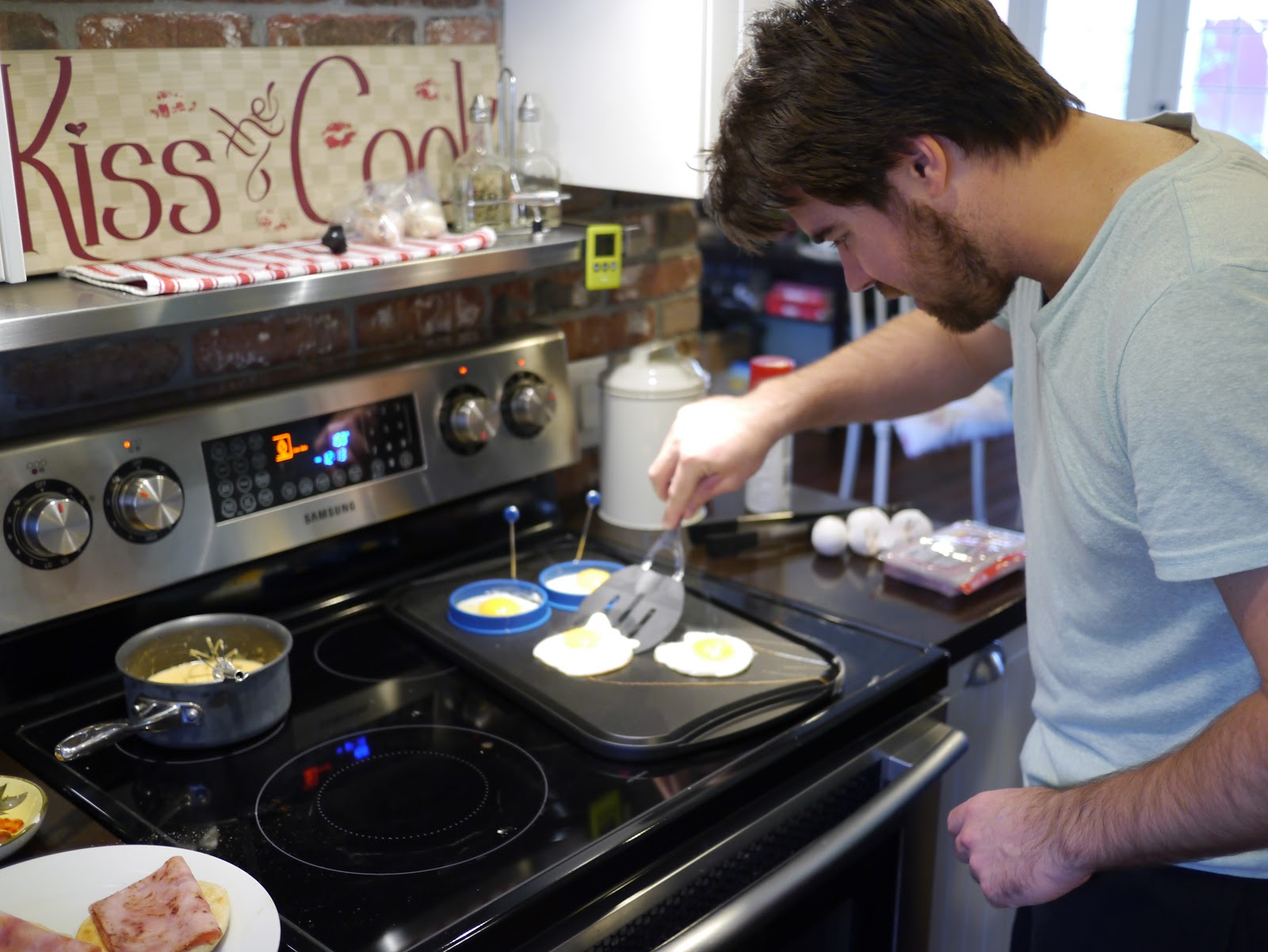 {ting opened up a couple gifts early so he could use them. new griddle and silicone egg rings}