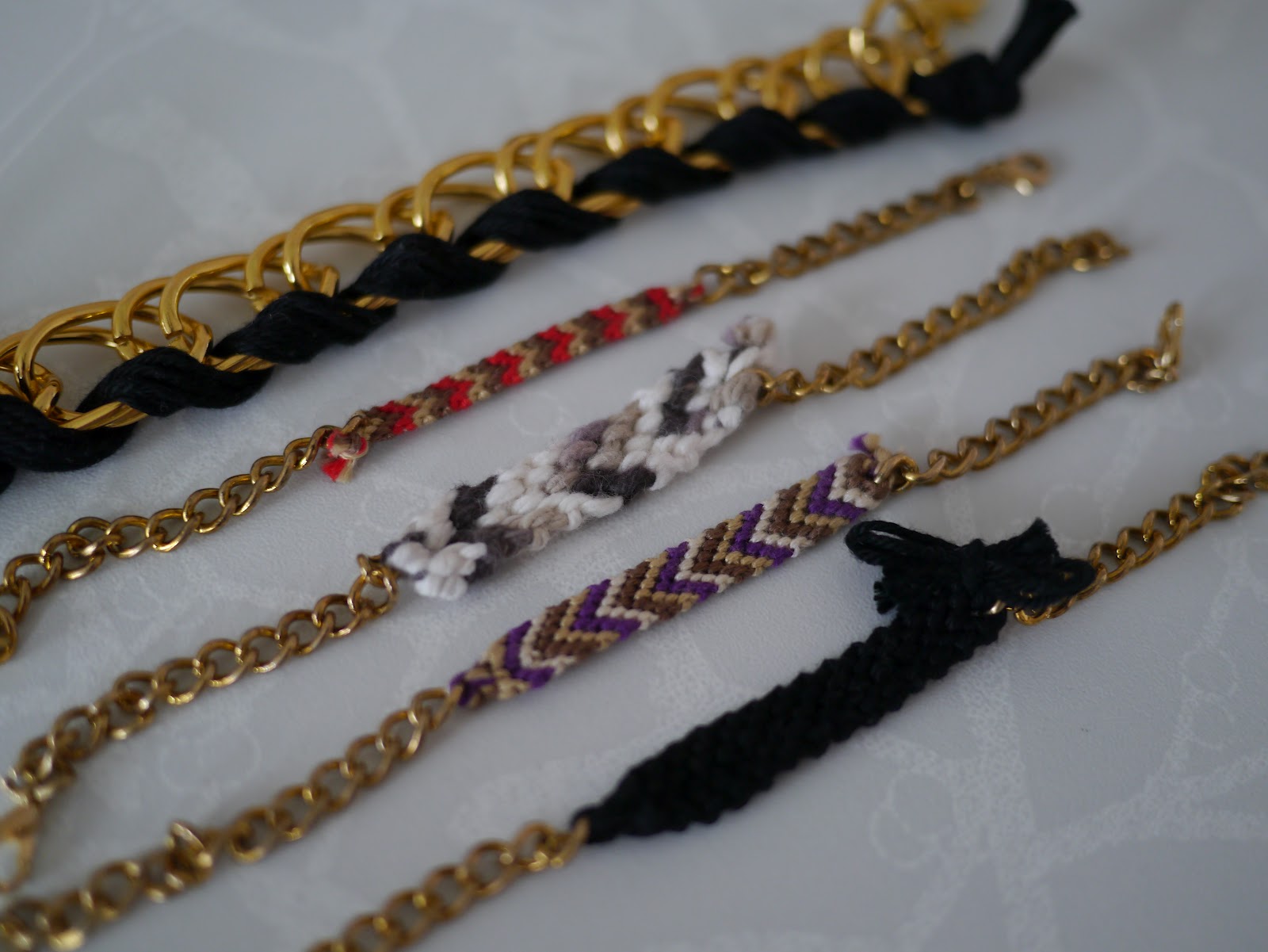 so, i got inspired and creative and over the past few months i’ve been making them with chains and clasps. a chicer, more adult version of the wonderful friendship bracelet we all know and love from our past.