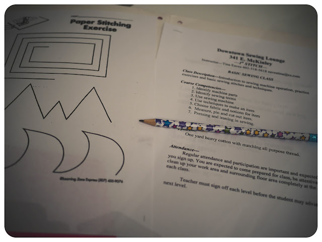 the class was three weeks long, two hours each class. $10 for the first class and $20 for the following two classes for a total of $50 for a 6-hour basic sewing class. sounds good to me! me and my three classmates we went from stitching paper to making a full blown apron in just three weeks. we learned basic machine use, stitching, measuring, fabric pressing and how to follow a basic pattern.
