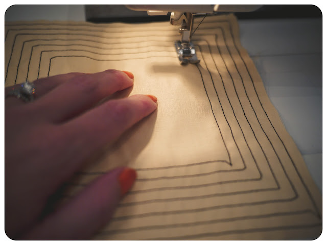 {on the first night, we moved from paper to actually stitching patterns on fabric}