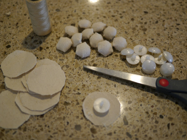 {making fabric covered buttons. there’s a much easier way to do this, but we couldn’t find the kit anywhere}