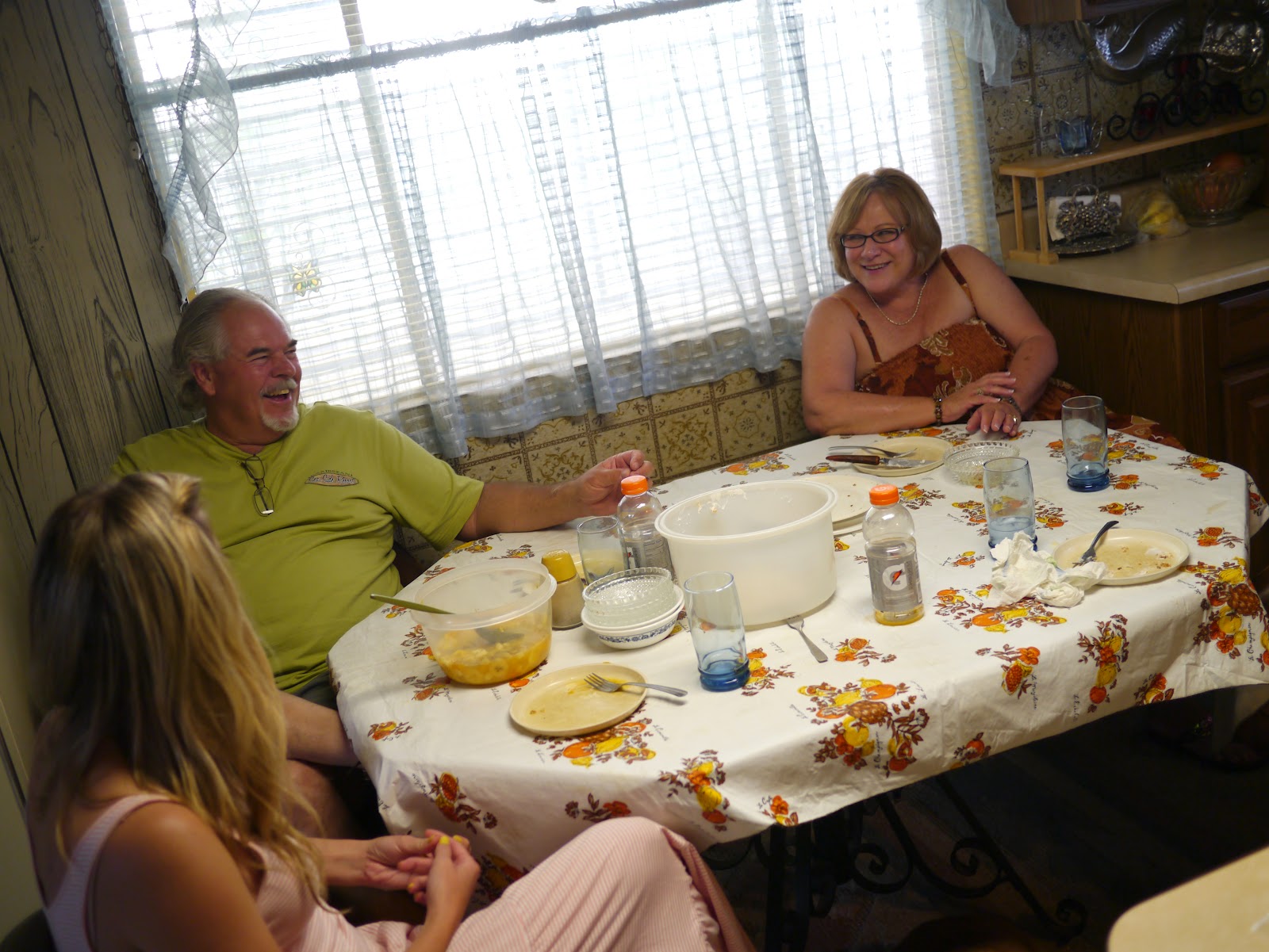 we made our way down to tucson this weekend for a little family time. we relaxed poolside, i read a stack of magazines & made some friendship bracelets, danny got vicky and joe’s technology upgraded, but the highlight was grandma peggy having us over for a good ‘ole comfort food feast… homemade fried chicken, creamed corn, ham, honey glazed veggies, rolls, salad and angel food cake with fruit salad for dessert. finger lickin’ good (and def not part of the coachella diet, but oh well it was tasty and i’ll dance it off). after dinner, the four of us sat on grandma’s back patio, reminisced and swapped stories. grandma’s so spunky and full of awesome stories – her memory is incredible. hope you and your family had a nice weekend.