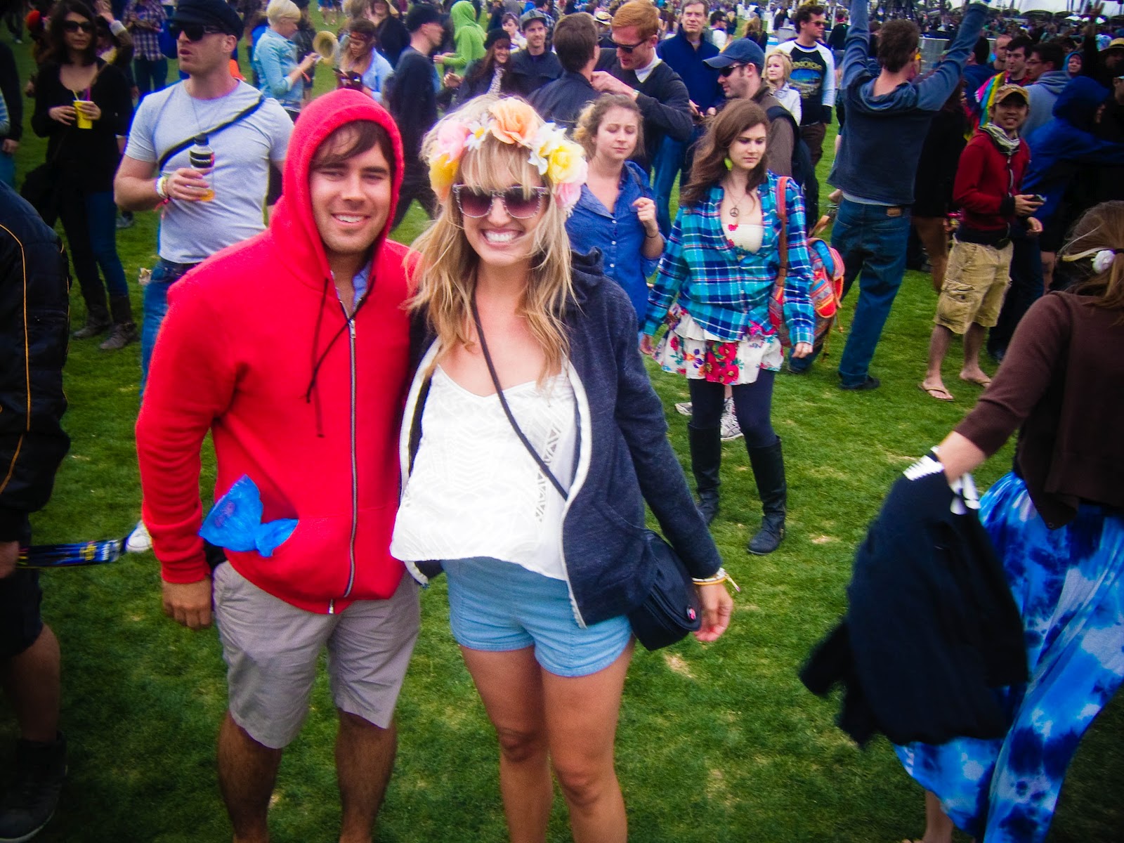 coachella 2012 was unlike any other. in fact, ting says it was his favorite year yet, which makes my heart happy! for me? i can’t lie – the weather forecast threw me for a huge loop (i really need to learn to deal better with things that are totally out of my control), but in the end it was the nutso weather that added to this weekend’s memories. never had coachella goers even thought about rain or wind and we were faced with both (and of course we did just fine). was it totally insane for us? yes. did we have to give up some of my favorite time lying in the grass in the sunshine? yup. was it freeeeeezing cold on friday and saturday night? yes. did some of the art have to come down? yes. but it all proved that nothing can dampen your spirit coachella once you step foot on the polo fields. the positive energy is undeniable. but i’ll tell you what, when the mercury hit 82° on sunday the vibe really came alive.