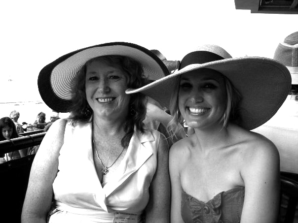 {my beautiful mom sandy and me wearing our big hats at the del mar horse races}