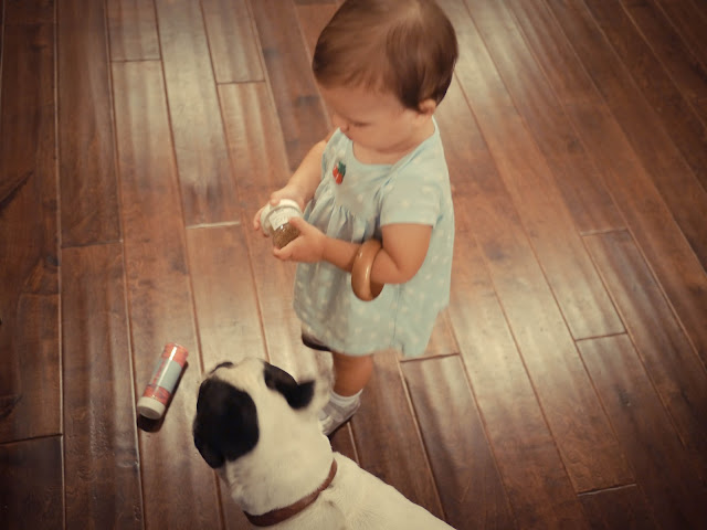 {aunt teri & uncle danny do not have any baby friendly toys. so, a couple chunky braceletes and some plastic jars of sprinkles served as toys and fun}