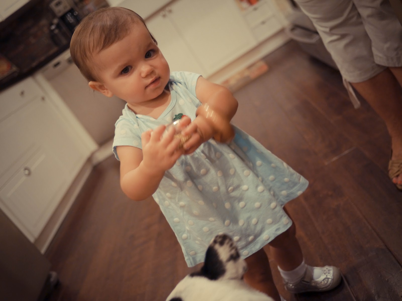{aunt teri & uncle danny do not have any baby friendly toys. so, a couple chunky braceletes and some plastic jars of sprinkles served as toys and fun}