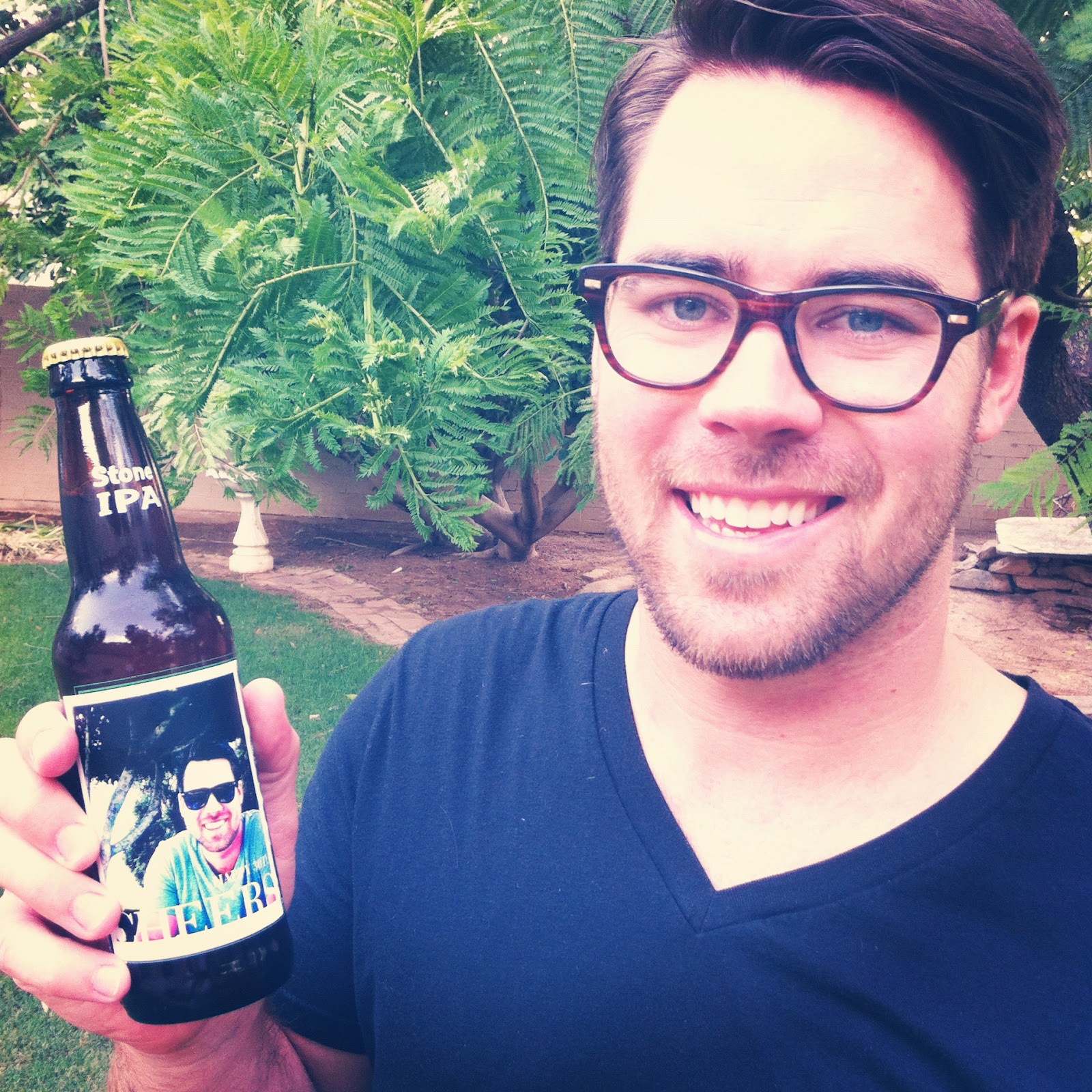 {i surprised ting with a fridge full of beer with custom birthday labels from Pinhole Press}