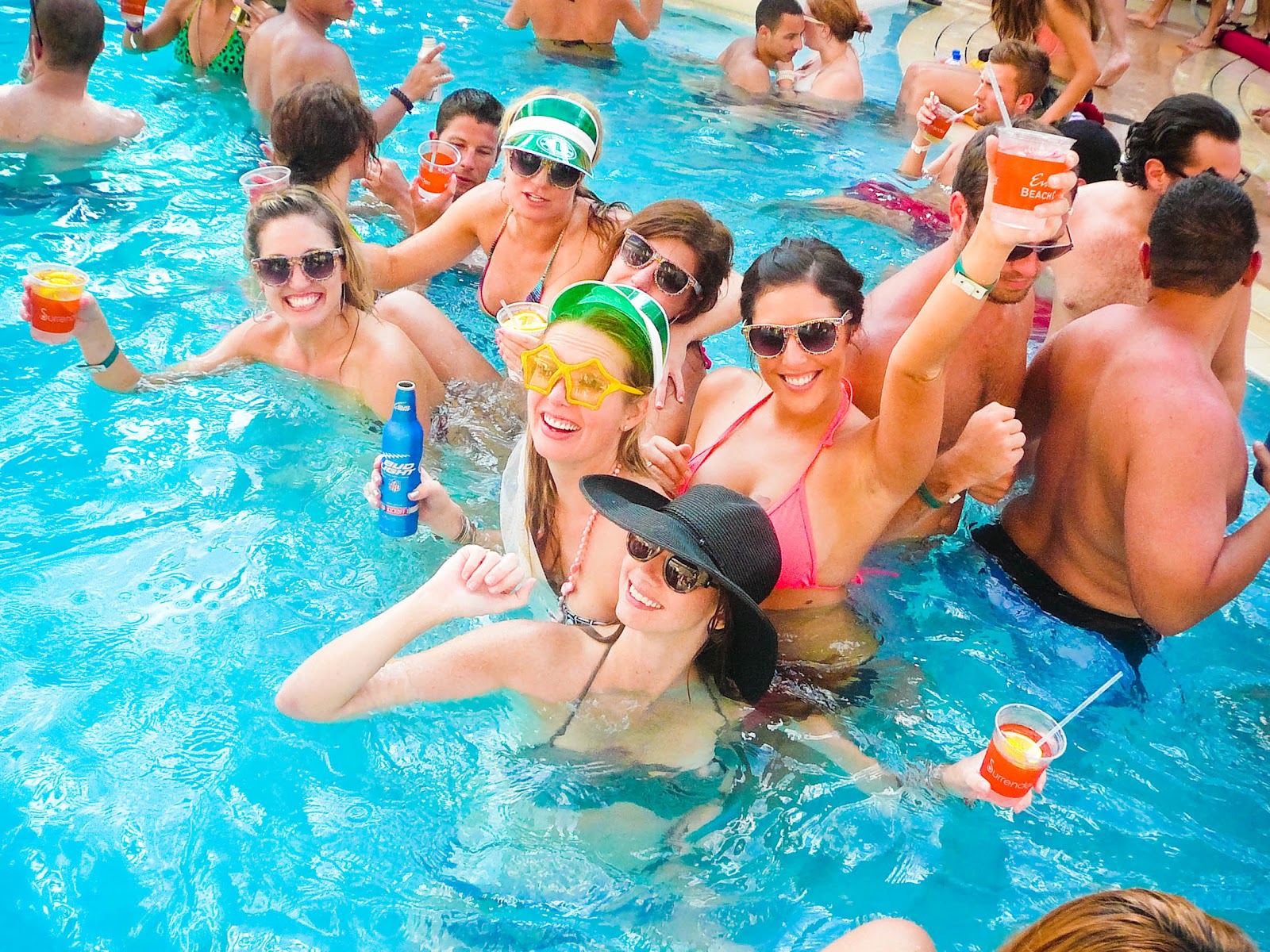 for years, when we’ve asked jenny what she wanted to do for her bachelorette party she always said she imagined a pool party… a real crazy pool party. well, there’s no better place for a crazy pool party than las vegas – encore beach club to be exact – so that’s what we did.