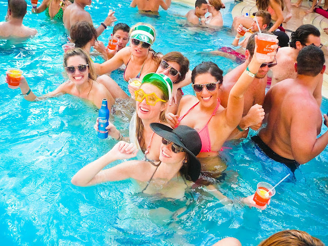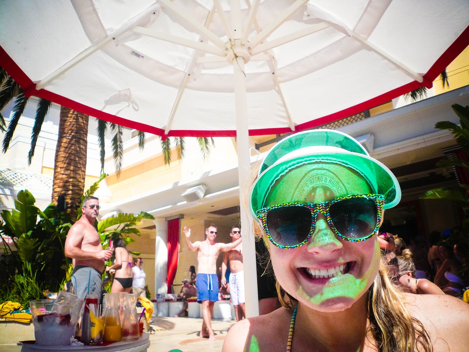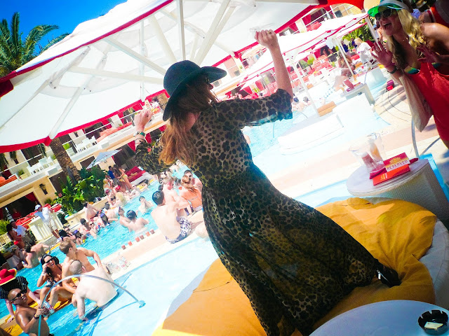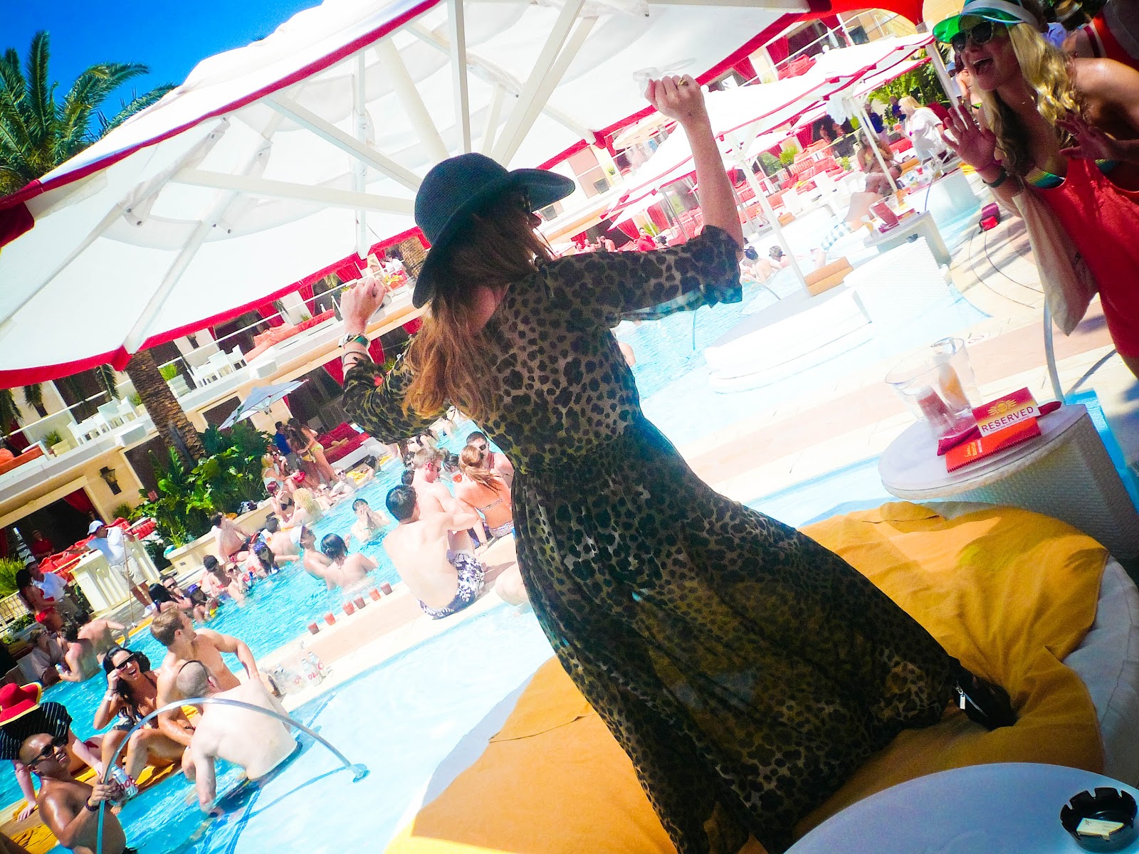 the pool party didn’t disappoint. it started with early morning haircuts… a private escort into the party which was followed by special pool performances by the bachelorette and the day ended with the bride walking down the strip in her white swimsuit and wobbly headband to hail the rest of us a cab. #bachelorettepartysuccess