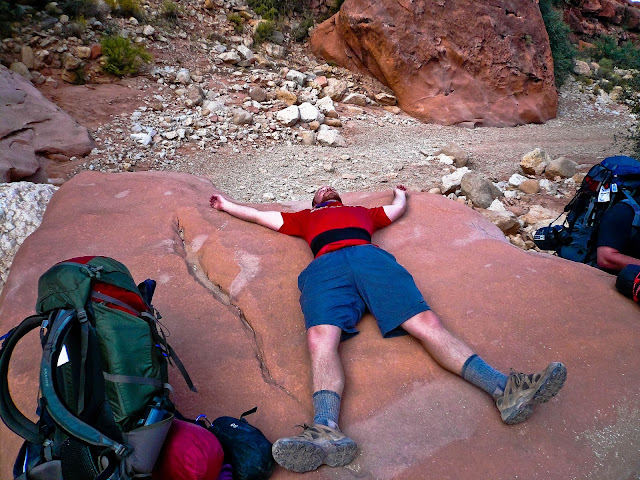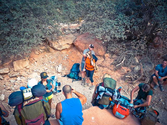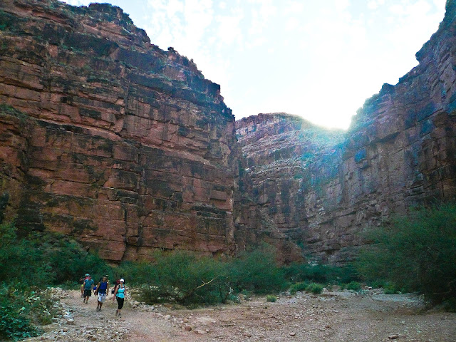 there were 15 of us in the group and with 13/15 people packing their own bags down, we stopped often and took it slow and steady. it’s 10+ miles and took us about 5.5 hours from the trailhead to our campground. during the hike we’d all stop and remind ourselves to stop and look up to admire the beauty of the canyon. the further down you get, the greener things become and you start to feeling the air change with moisture.