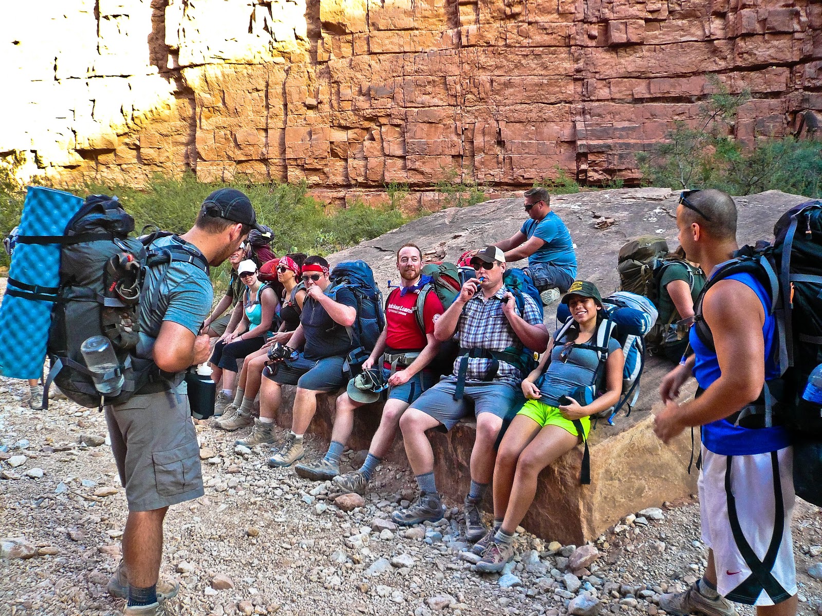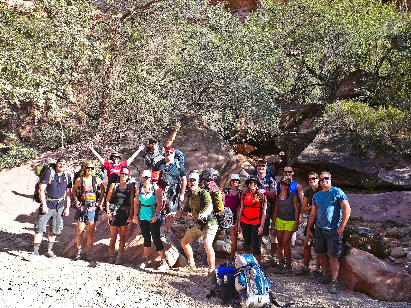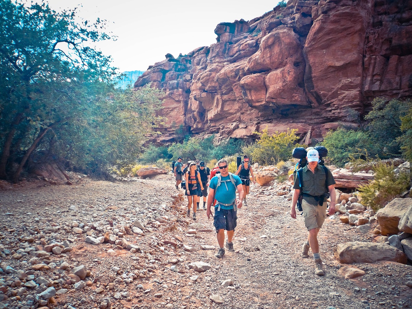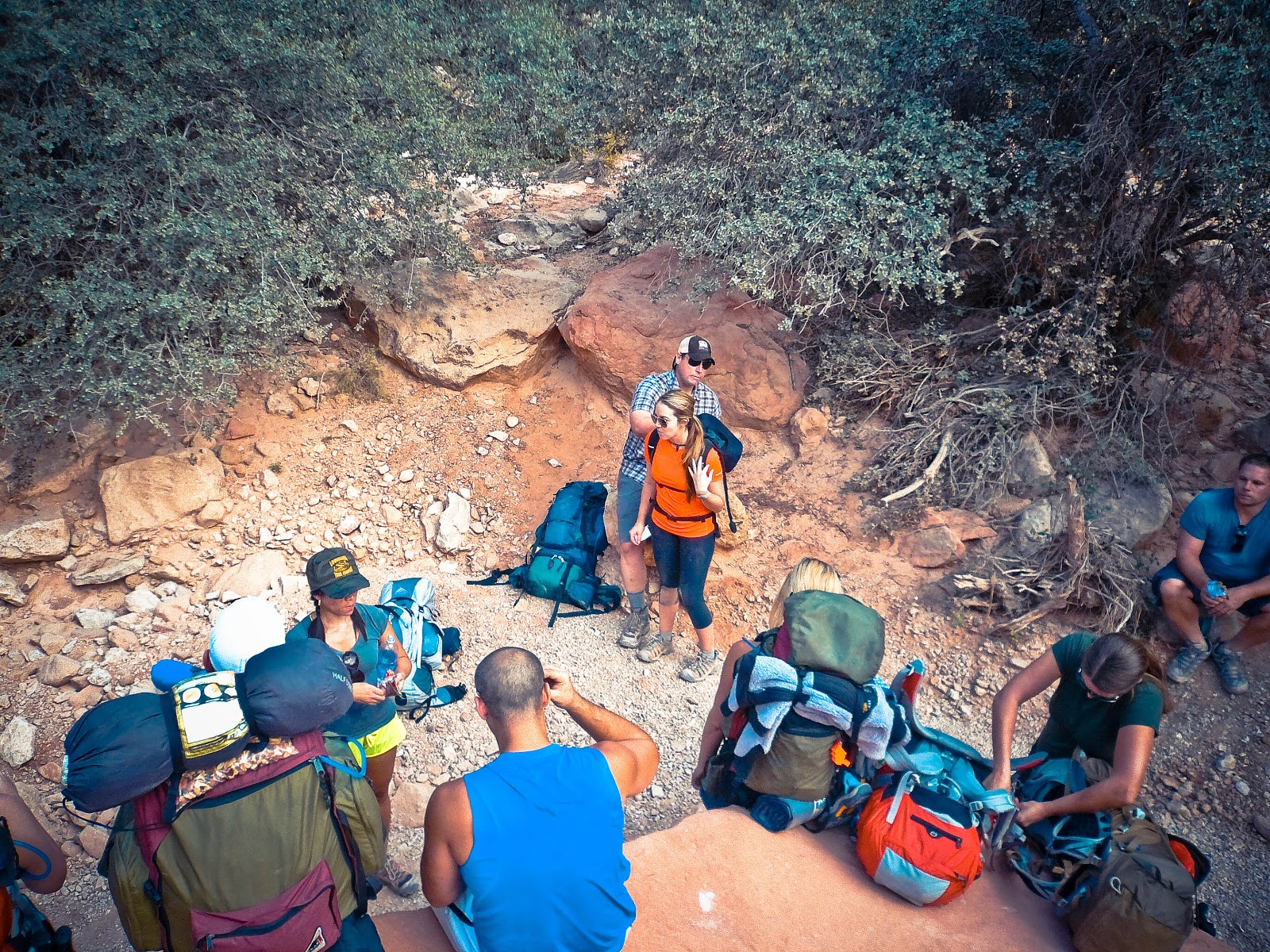there were 15 of us in the group and with 13/15 people packing their own bags down, we stopped often and took it slow and steady. it’s 10+ miles and took us about 5.5 hours from the trailhead to our campground. during the hike we’d all stop and remind ourselves to stop and look up to admire the beauty of the canyon. the further down you get, the greener things become and you start to feeling the air change with moisture.