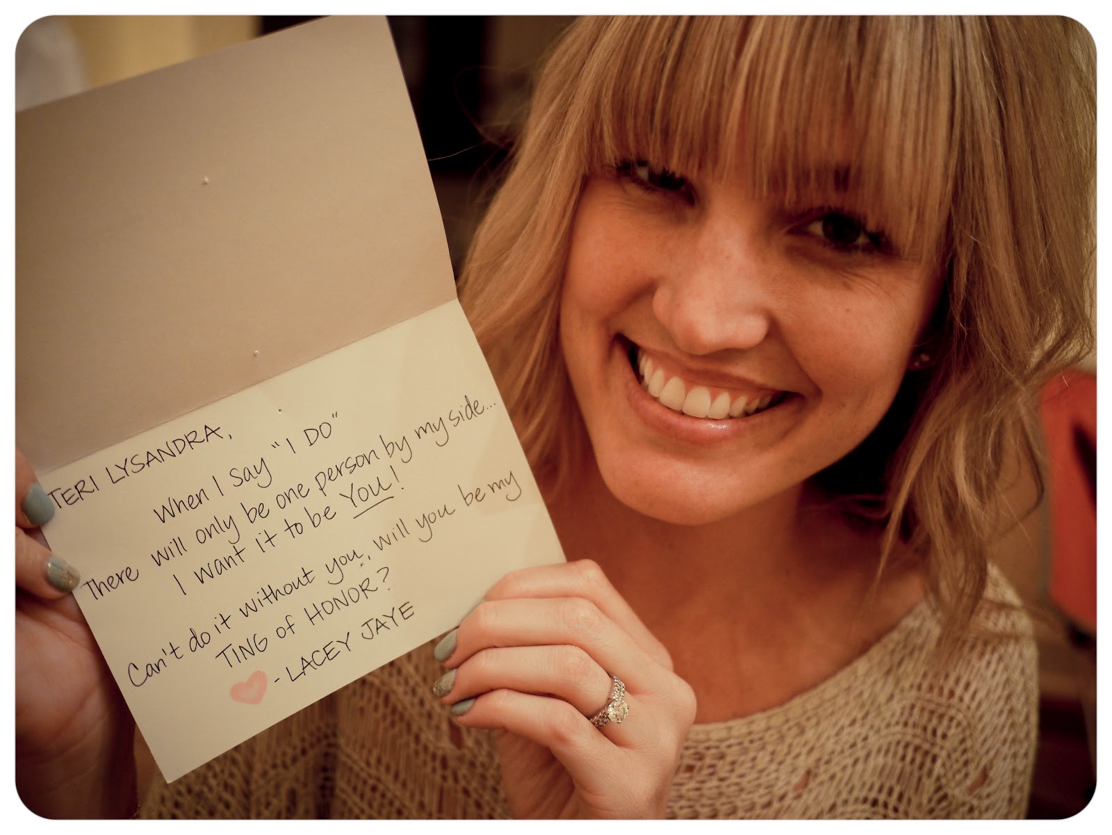 …via a sweet ‘lil ivory and pink note, lacey asked me to be her maid ting of honor.