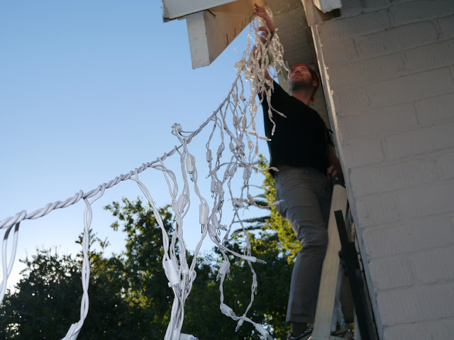 but! much to my excitement, when we got ready to hang our lights this past weekend, ting realized the nails on our new home were on the backside and totally set-up for ICICLES! yeeeeeessssss!