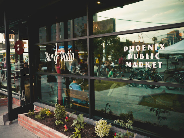 about this time last year, the downtown phoenix market and wine bar closed. they continued to host the outdoor farmer’s market & food trucks on wednesday night and saturday mornings (seen here), but adios wine bar. well, the phoenix public market cafe is back and better than ever! on wednesday, may 8th, we rode down to the grand opening event to check things out (aka eat and drink). i guarantee we’ll be regulars.