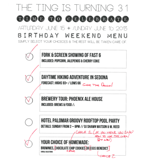 earlier this week, i sent danny an al-a-carte birthday menu. he got to pick the plans and i’d handle the rest (along with a few surprises sprinkled in). we’re off to lunch before the 3:30pm showing of Fast & Furious SIX. oh boy!