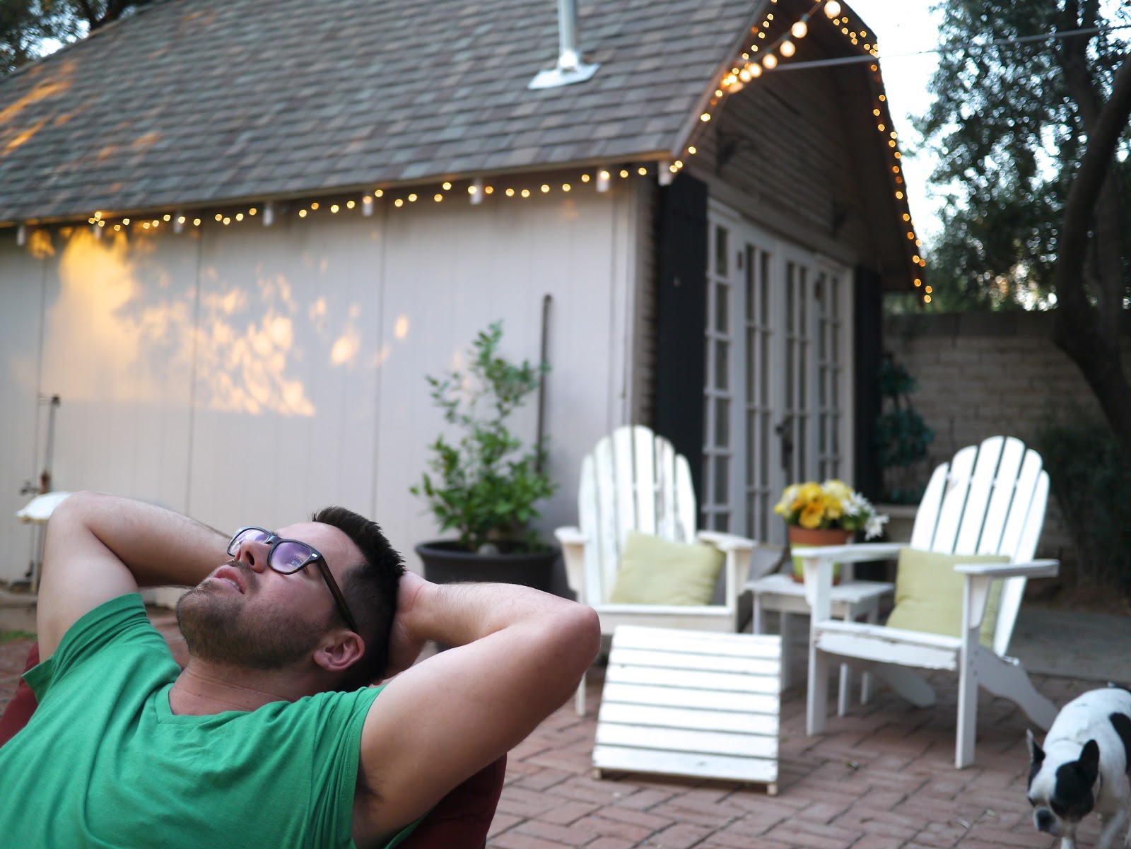 i snapped this of mister danny totally enthralled with monitoring the bird activity in the tree. there was something about a hummingbird and a nest… he loves it.