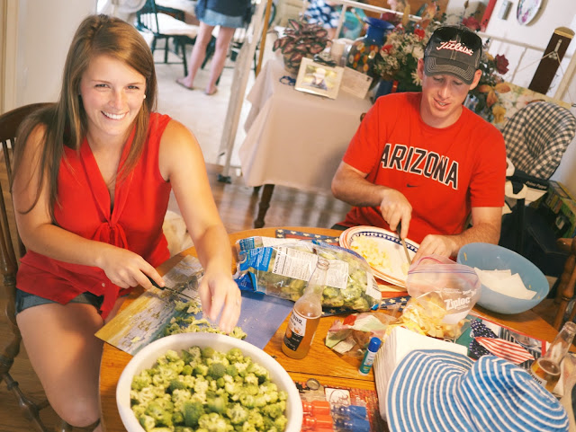 ting helping buffy (quinn’s mom) & molly (quinn’s sister) with the bbq fixings – deviled eggs, potato salad, homemade mac & cheese…. oh, and he may have been offering up some recipe “tips”